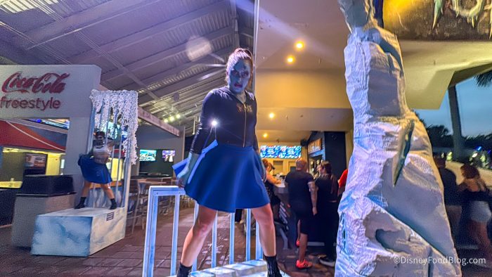 At the Fanta-sponsored Fright House booth, we tried the Eerie Eyeball Mocktail, which is made with Fanta Orange and Minute Maid Lemonade with black edible glitter for $9.99. Ours came without the glitter, since the team member working the booth didn’t have all the ingredients on opening night, but that didn’t change the fact that it was delicious! It’s very sweet, though, like sipping a liquid Jolly Rancher, but we weren’t complaining.
