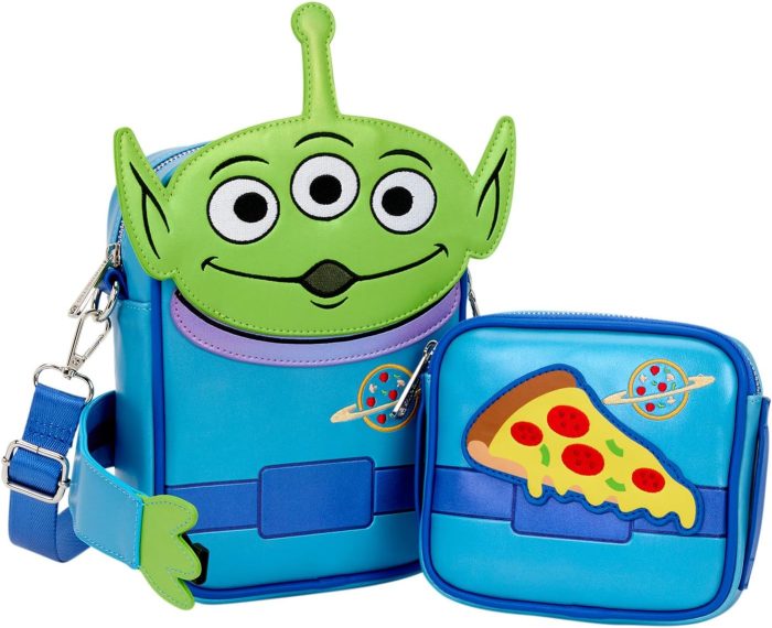 Take a look at this 30th Anniversary Aliens Crossbuddies Crossbody Bag! This Crossbuddies bag takes the shape of one of the iconic aliens from Toy Story. Its arms come around the front to hug a reversible and removable coin bag. On one side of the coin bag, you’ll find a slice of pizza, on the other, you’ll find a soda! We can’t help but say “OOOOOOH” when looking at this thing.