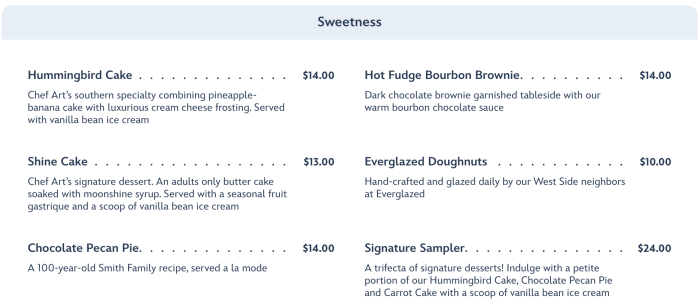 We’ve never had a bad meal at Chef Art Smith’s Homecomin’! And since this definitely counts as a meal, we can add this to the list as well. If you’re looking to celebrate something special or are just after some delicious desserts, you should definitely see if you can snag a reservation! They also offer walk-up seating at the bar if you’re lucky.