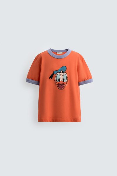 Any Donald Duck fans? Take a look at this Donald Duck T-Shirt, featuring the iconic character at the center! This is a relaxed fit T-shirt with a round neck and short sleeves. We love the contrast in colors between the orange and blue.