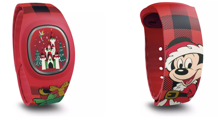 The Santa Mickey Mouse Holiday MagicBand+ is a limited release, so it definitely won’t be around forever! The band itself has a classic holiday red and black plaid pattern, and you’ll find Mickey in his Santa outfit on one side, with some festive presents on the other. The tap point of the band features Tinker Bell flying above Fantasyland Castle (that’s not Sleeping Beauty Castle OR Cinderella Castle, so it’s not specific to one resort). Every time you look down at your wrist, you’ll remember that it’s the holiday season!