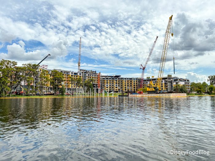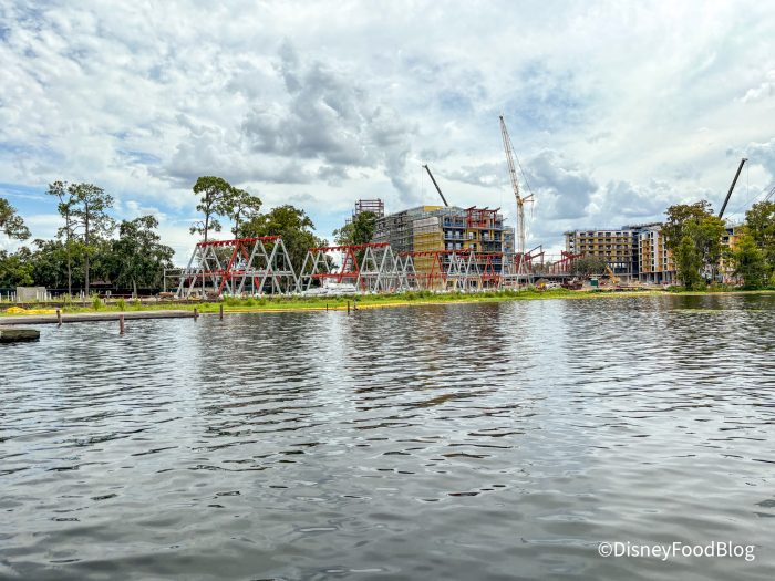 This resort is located between Disney’s Fort Wilderness Resort & Campground and Disney’s Wilderness Lodge. The brand-new hotel will be “inspired by the majesty of nature and its enduring influence on Disney artists.” We were able to see the progress being made on the Disney boats to Fort Wilderness. As you can see, many cranes and lots of construction is happening in the area.