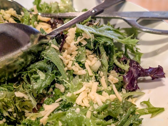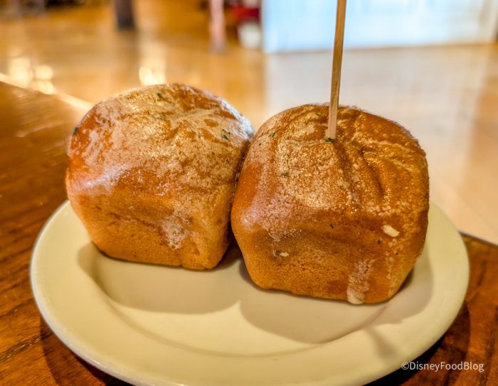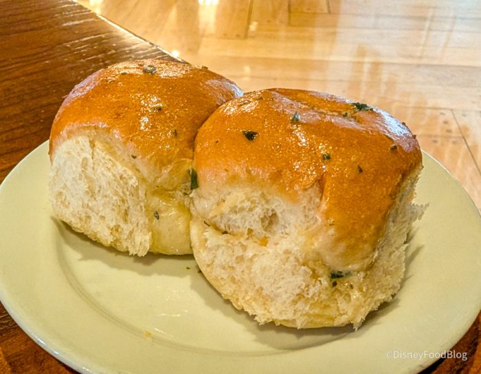 We also tried the Allergy-Friendly Rolls. These are the same allergy-friendly rolls you’ll find in other Disney World restaurants, and they’re a bit stiffer and drier than the regular rolls. But they’re pretty good. You can also get allergy-friendly butter if you don’t do dairy.