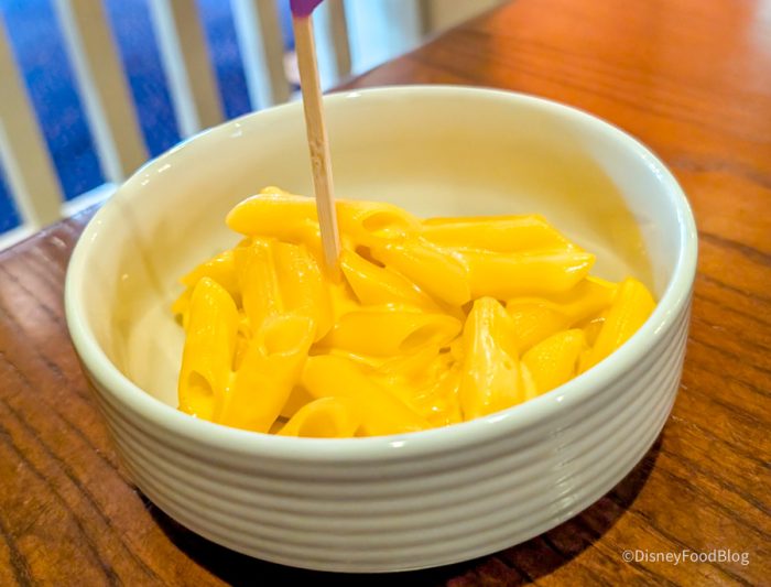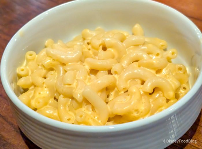The mac and cheese is a people-pleaser. It might not be the best mac and cheese in Disney World (and yes, we have opinions on that), but everyone seems to like it. We’re always a little disappointed because, although the cheeses are delicious and the noodles are al dente, we think a baked mac and cheese with that crispy top would be better with a meal like this.