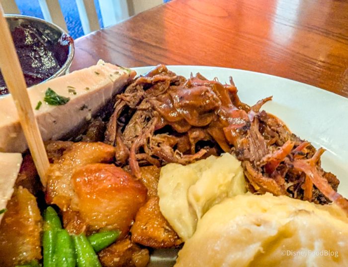 We just ate there last week on a quick trip before the Thanksgiving rush. I can attest to all you said. The pot roast was a big hit at our table. Everything was tasty and hearty. The salad, although simple like you stated, was another of the favorites at our table. Perhaps the simplicity was what made it great. Perhaps it was also the fact that we each had only half a piece of fruit in the early morning and sat for dinner at 5pm! Liberty Tree really is the best sit-down restaurant in the Magic Kingdom for taste and value, but we rarely want to eat there. We find it difficult to eat this meal between May-September in Orlando, regardless of how hungry we are. It’s just too hot for stuffing and gravy. Because of this, we hadn’t been in more than ten years. On this last visit, the planets aligned and we decided to go for it! We were not disappointed. For a nothing fancy, everything delicious, fill-you-up with meat and potatoes meal when it’s not super hot—-it’s a gem.
