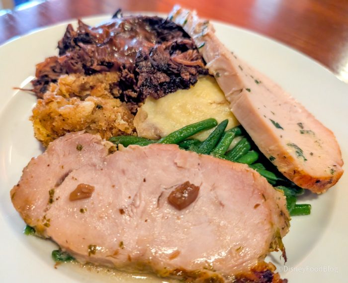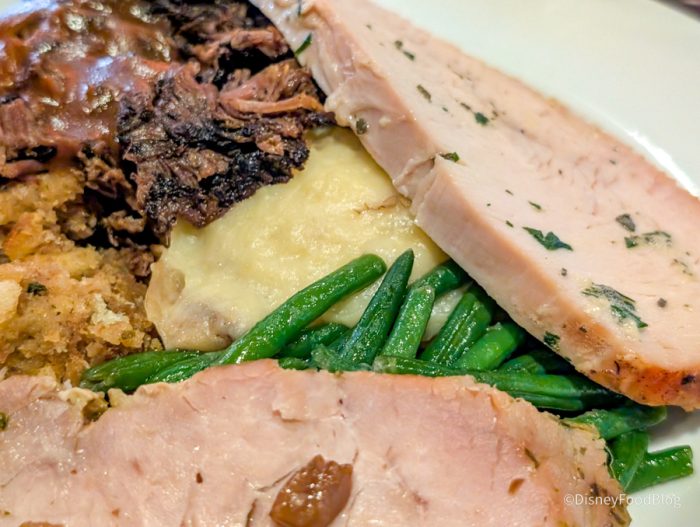 Since everything else is basically the same, we need to talk about that stuffing. You just don’t see gluten-free stuffing ANYWHERE. We thought it was so good, and it reminded us of the regular stuffing. So well done on that, Disney.