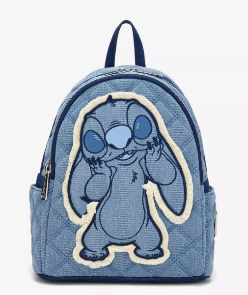 We also adore the design of the Lilo & Stitch Denim Patchwork Mini Backpack, because the fabric itself looks like super cute patchwork. Stitch himself is outlined in white, so he’s easier to make out, even though he’s the same denim color as the rest of the bat. The front pocket of this bag is taller than many others, but it isn’t as deep, so that’s something to keep in mind!
