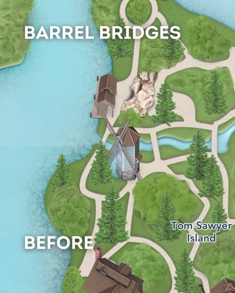 Longtime fans might’ve worried that the old Liberty Square boat dock and barrel bridges would vanish in the overhaul, but good news, they’re sticking around.