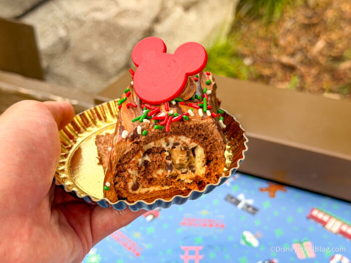 Now, there are a lot of sweet treats you can get at the festival, but if you opt for just one, get the Cookie Dough Yule Log filled with chocolate chip cookie dough and white chocolate mousse covered with chocolate buttercream for $8.50. We really enjoyed this treat last year, and this year, it’s the same.
