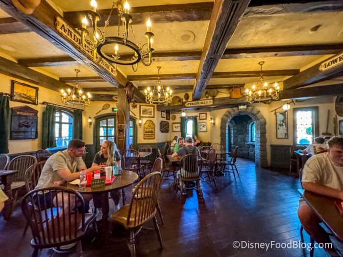 We think this is a reliable option in a park where food is hit-or-miss. Will you be thinking of these Fish & Chips forever and ever? Most likely not. But you will likely leave feeling full and satisfied, and having had an enjoyable meal. Plus, the restaurant was so much fun to eat at, and we loved admiring all the details!