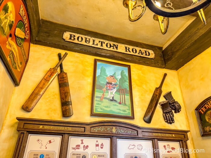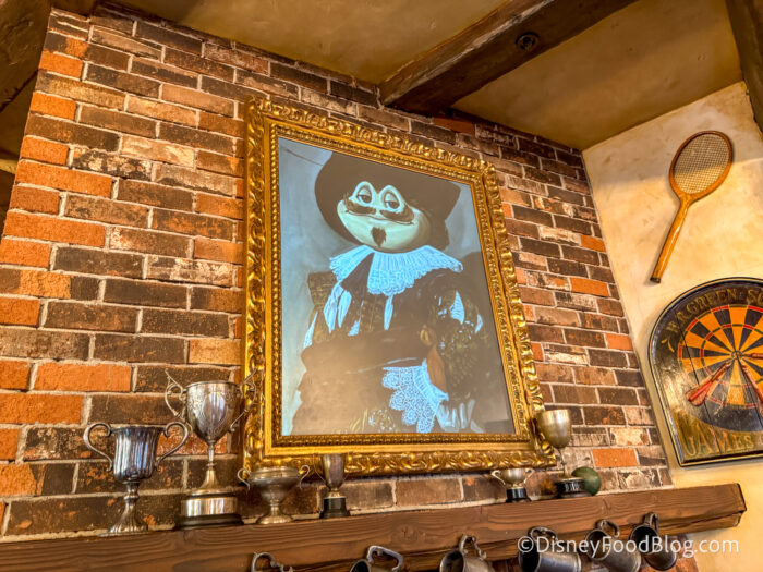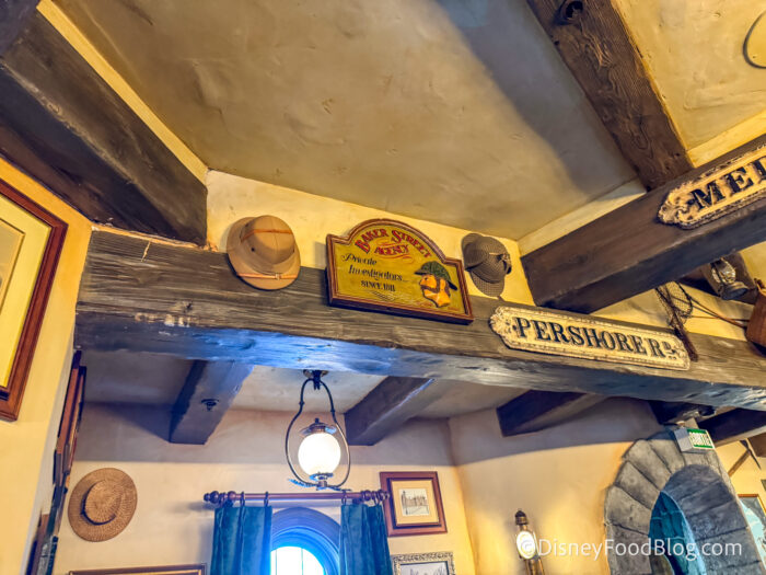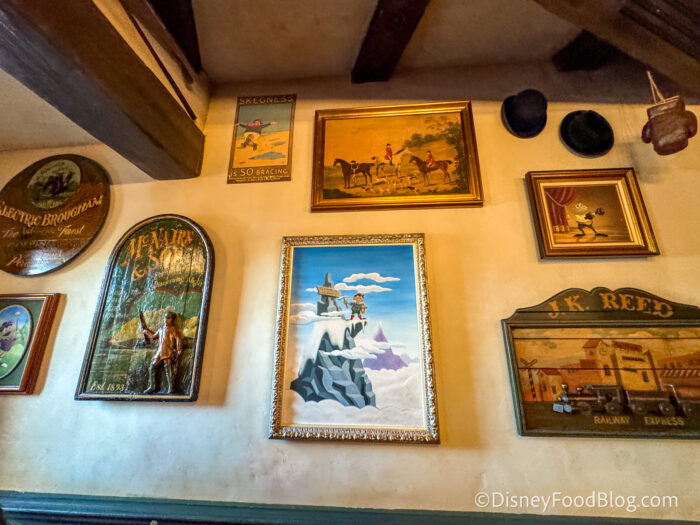 Toad Hall serves up British fare, which you can enjoy while admiring Mr. Toad’s family portraits and Wind in the Willows artwork. Just about everywhere you look in Toad Hall, you will find fun details! We definitely spent way too long exploring all the walls of this restaurant. You can see Mr. Toad on a variety of adventures around the world.