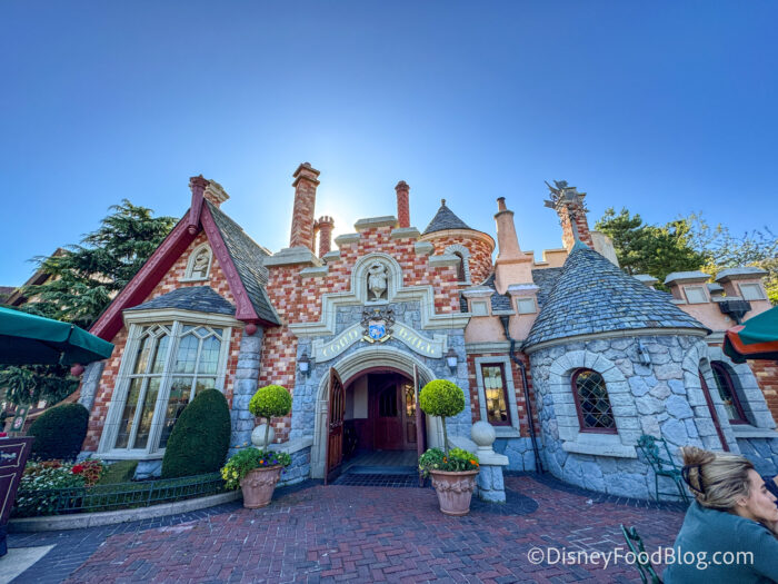 Toad Hall Restaurant is located in Fantasyland at Disneyland Park, and we are headed over to enjoy the ambiance and try out one of its signature dishes. The restaurant is inspired by The Wind in the Willows, and even from the moment you walk up to this restaurant, you will feel like you have been whisked away to the English countryside. The facade of the restaurant features brick and stone work, with lots of details, including a variety of chimneys. As you walk into the restaurant, you walk under a coat of arms with “Toad Hall” in gold lettering.