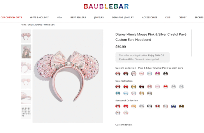 BaubleBar has an incredible deal with 20% off custom gifts, including ears!