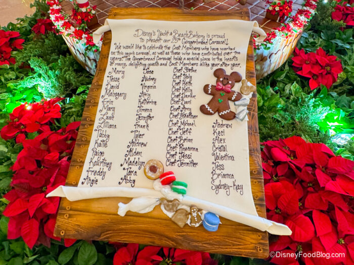 We also loved that there was a gingerbread list made up of Cast Members who worked on the carousel this year, and y’all, it takes a LOT of people to put something like this together. Well done!