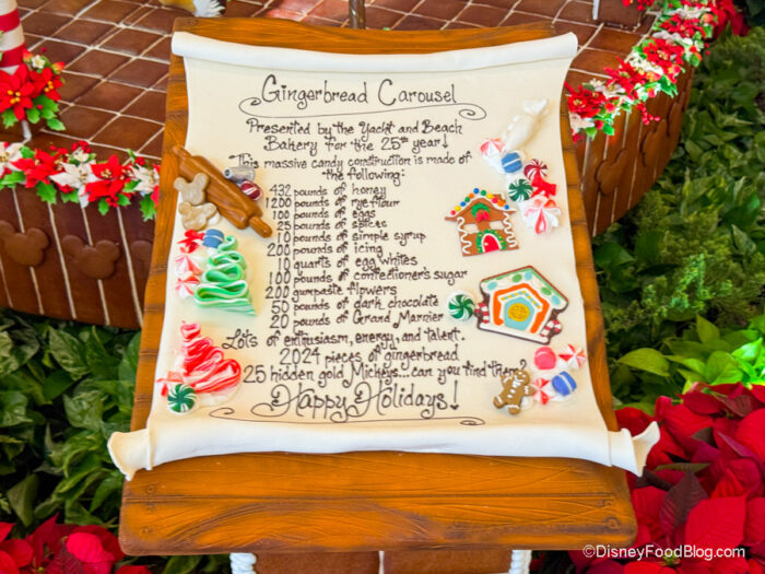 And if you’re curious as to how many ingredients were used to make the carousel (and how much of each ingredient), be sure to check out the scroll with all the details.