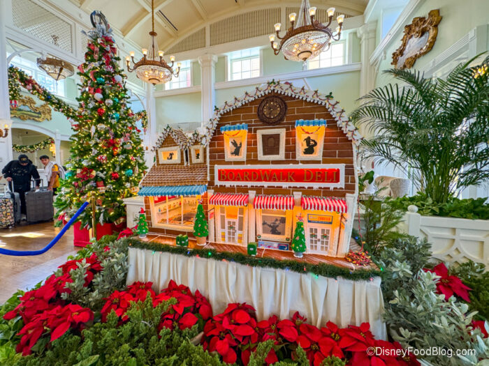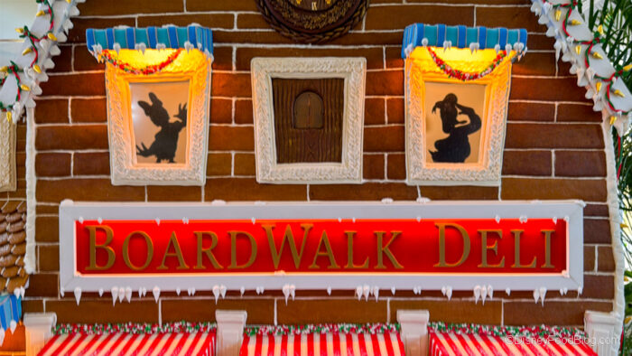 But that’s not the only gingerbread display in the area. Disney’s BoardWalk Inn has put up its gingerbread display, too, and it’s a gingerbread version of BoardWalk Deli. Look at this thing!
