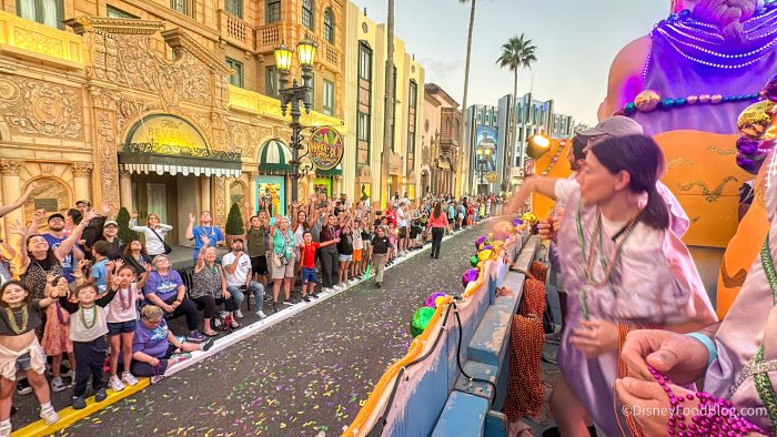 The Mardi Gras Float Ride and Dine Experience will also be returning in 2026, which is where guests can enjoy a savory three-course meal on the day of their visit that features one appetizer, one entrée, one dessert, and one non-alcoholic beverage from one of five participating restaurants, and then ride on one of the parade floats that evening! It starts at $94.99 plus tax per person, and you can reserve your spot by calling 407-224-7554 or visiting the Universal Orlando website. The restaurants participating in 2026 are: