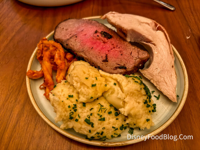 It’s served family style and reminded us of a delicious Thanksgiving meal. There were tons of options like turkey, chicken, beef, fish, brussels sprouts, pastas, and so many desserts! The meat literally melted in our mouths, and we fell in love.