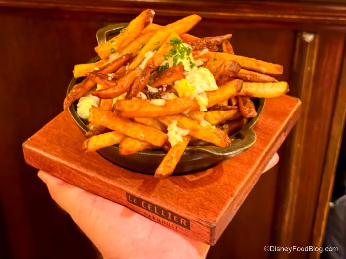 If you typically look forward to a stop at the Refreshment Port for some specialty poutine during EPCOT festivals, beware that you’ll need to find another spot to snag it for now! In EPCOT, you can try to grab a reservation at Le Cellier Steakhouse and order the Signature Poutine. Just keep in mind that reservations can book up fast, so you’ll need to plan in advance for this one (and allow more time & money in your budget since it’s a table service spot).