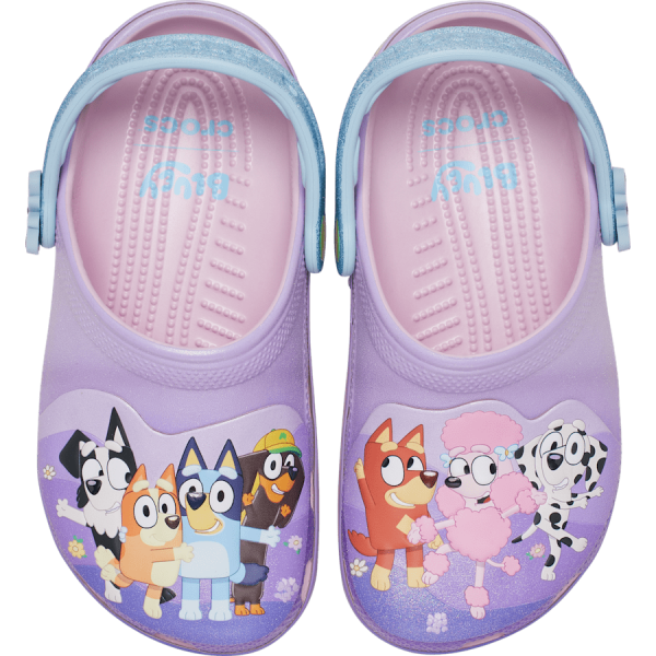 These fun light purple Crocs are a great way for kids to usher in spring, especially since they feature Bluey and Bingo with their friends Mackenzie, Snickers, Rusty, Coco, and Chloe.