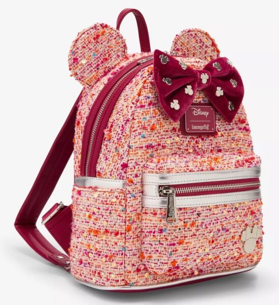 This Loungefly Pink Bouclé Fabric Minnie Mouse Ears Mini Backpack might honestly be the most fashion-forward Loungefly we’ve seen in a while. It’s made with bouclé fabric and has sequin details, matching Minnie ears, a velvet bow, and metal Minnie Mouse badges. It’s giving elevated, chic, and totally park-ready all at once. It’s currently 20% off, and yes, there’s a matching wallet if you’re feeling coordinated.