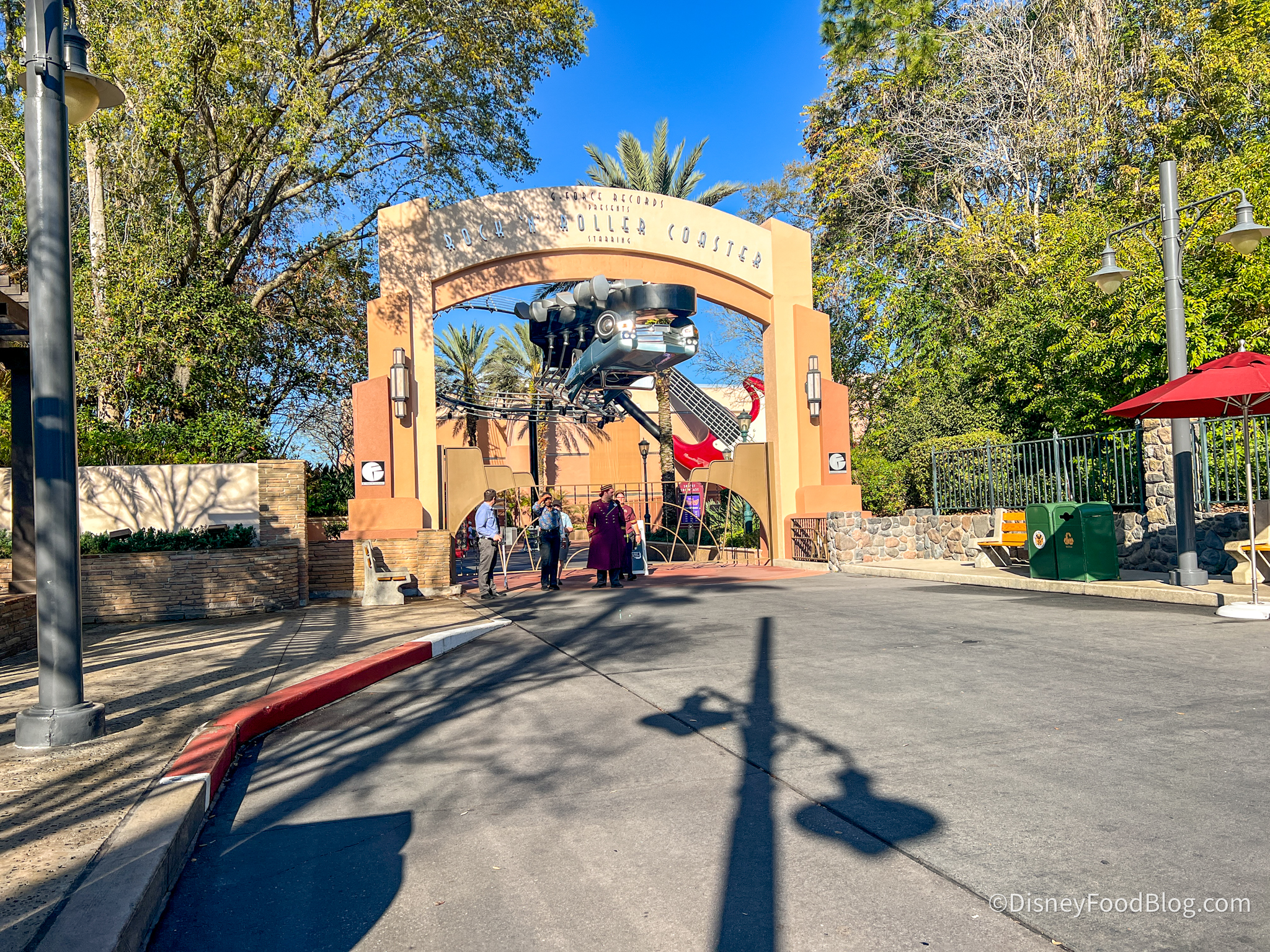 We also were able to see the guitar from the gate, and it looks like the wording has ALREADY been taken off the guitar! We can see where it used to say “Rock ‘n’ Roller Coaster Starring Aerosmith,” likely because it was on there for so long, so it left a lasting mark.