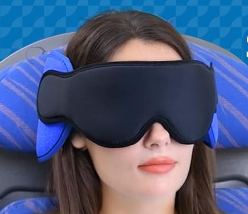 The pillow attaches easily to your airplane headrest and stays on for our whole long-haul flight. This was also so secure, both to our seats and around our heads. It offers 360º support, which connects to the seat and wraps the pillow around your head. This kept our necks straight and avoided the stiffness we’d usually get while sleeping on airplanes. It even rolls up and comes with a handy dandy carrying case, which is so convenient since we travel often for work!