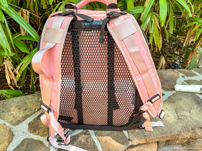 It also helps distribute the weight more evenly, and our reporters who struggle with back pain really like to use this on long days in the parks. The way the VentaPak straps onto your backpack, you might feel a little more sweaty under your arms, but that’s a lot easier to hide than your entire back (and hey, your underarms were probably going to be sweaty anyway).