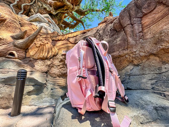 This is a backpack spacer that you slide onto your backpack straps, preventing your backpack from sticking to your back. There’s a little bit of breeze that floats between your back and the backpack during the day, meaning your back isn’t nearly as sweaty as it usually is, and after walking around a theme park all day, you’ll be so happy that you’re less sweaty.