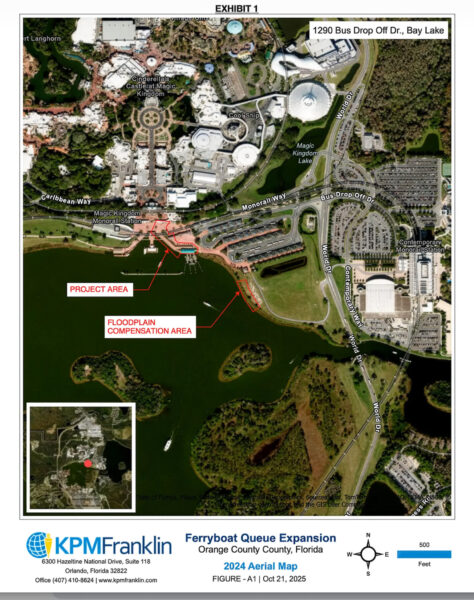 Several months ago, Disney filed an application for the expansion of the Magic Kingdom’s Ferry Dock, including dock expansion, hardscape improvements, and a floodplain compensation area at the ferry boarding location.