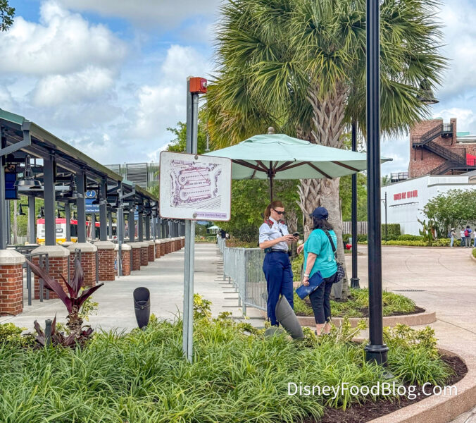 At each bus station, there was a guest relations Cast Member stationed so they could check to see if you have a confirmed reservation before hopping on the bus and heading to the resort. We spoke to a Cast Member who confirmed that it’s restricted to hotel reservations, dining reservations, recreation activities, or any general business at the resort besides leisure.