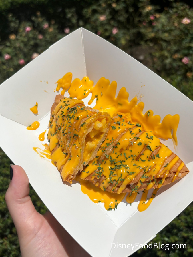 Because it is gloriously stupid in the best possible way. There is something beautiful about a snack that hears “mac and cheese” and says, “Great, but what if we also made it portable and a little chaotic?” This is not refined cuisine. This is not elegant. This is not the snack you get because you’re trying to “keep things light.” This is the snack you get because you’re in Magic Kingdom and your lunch brain briefly blacked out in the most delicious direction.