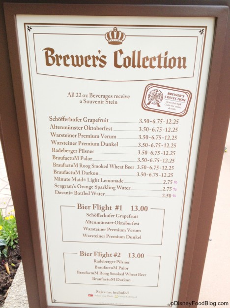 - Beer Flight 1: Schöfferhofer Grapefruit, Altenmünster Oktoberfest, Warsteiner Premium Verum, Warsteiner Premium Dunkel – $13.00