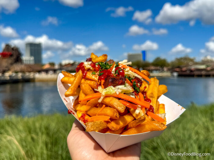 We’ve tried dozens of different varieties of loaded fries in Disney World over the years, and some of them have been standouts that we order over and over again. One of the best spots to visit if you’re a loaded fry enthusiast is The Daily Poutine in Disney Springs, and we stopped by to try one of their seasonal options!