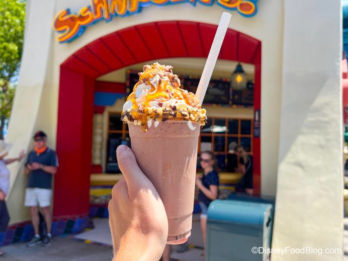 - Chocolate-caramel peanut shake — $9.49