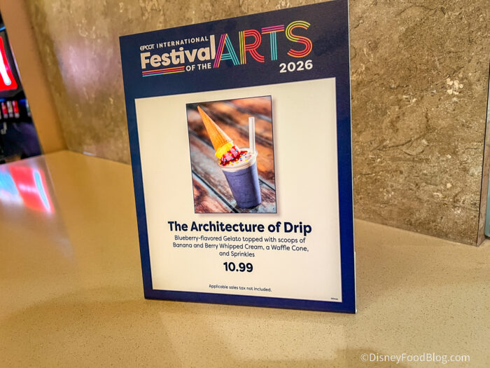 - The Architecture of Drip: Blueberry-flavored gelato topped with scoops of banana and berry whipped cream, a waffle cone, and sprinkles (New), $10.99