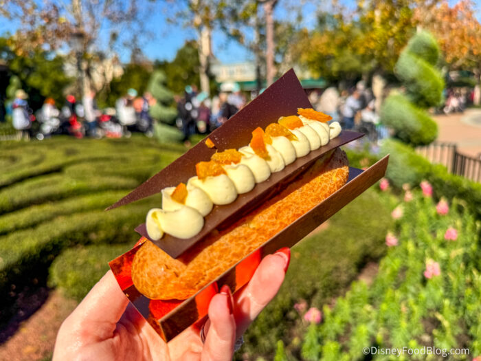 - Éclair au Chocolat et à l’Orange, Crème à l’Orange, Ganache au Chocolat, Croustillant de Noisettes et Oranges Confites: Chocolate-orange éclair, orange cream, chocolate ganache, crispy hazelnut, and candied oranges (New) – $8.95, DDP Snack Eligible