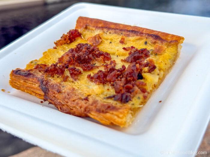 - Tarte Aux Oignons Caramelises: Caramelized onions on a flaky pastry crust topped with bacon (New), $8.25