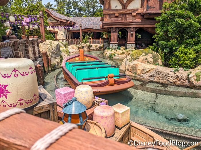 You’ll embark on a gondola tour aboard a boat-shaped vehicle. Along your ride, you’ll spot Rapunzel gazing out her tower singing “When Will My Life Begin” as Flynn Rider watches on.