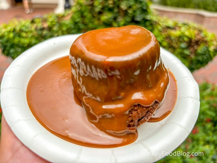 - Freshly-baked Chocolate Pudding Cake with bourbon caramel (Gluten/Wheat Friendly) (New) — $5.00, Disney Dining Plan snack credit eligible