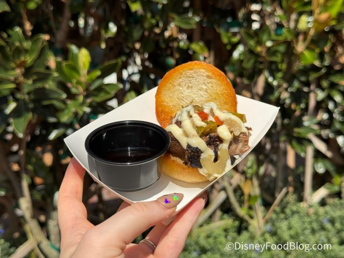 - New England Slider: Slow-braised beef pot roast with spicy giardiniera, horseradish cream, and crispy fried onions on a potato roll (New) — $6.00, DDP Snack Eligible