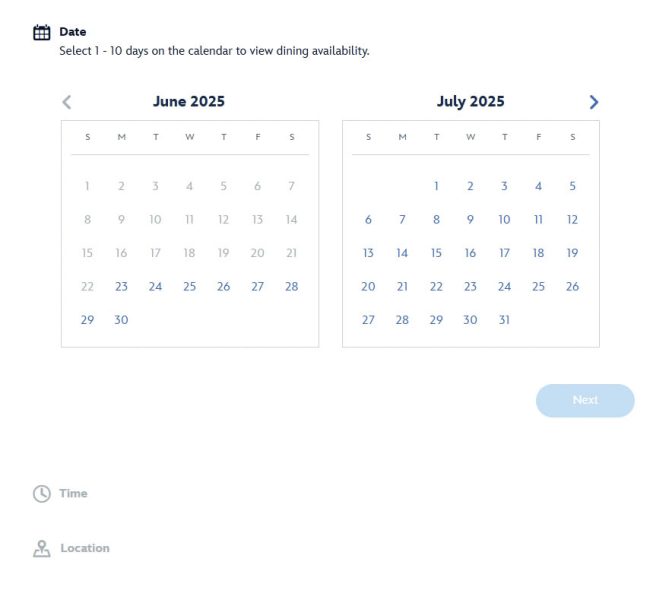 You can also book online using the Check Availability tool on each restaurant’s page located on Disneyland’s Website or the Disneyland app, taking the same steps as seen above from the Walt Disney World website.