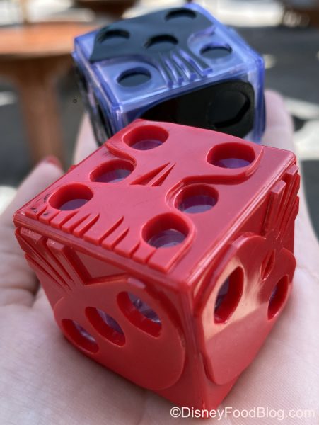 Fans of The Nightmare Before Christmas will want to keep your eyes peeled for the Oogie Boogie Light-Up Dice Novelty Cubes at several counter service locations in the park, including Cosmic Ray’s Starlight Cafe, Pecos Bill Tall Tale Inn and Cafe, and Pinocchio Village Haus. ($8.69 with any fountain drink.)