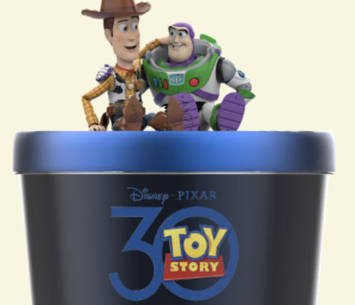 In celebration of this huge milestone and the upcoming release of Toy Story 5 (yes, five!!), AMC Theatres is releasing new Toy Story souvenirs — including a new popcorn bucket!