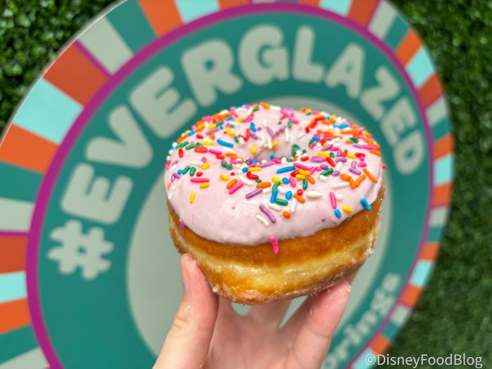 Guys, this is NOT a drill! One of our favorite Disney Springs spots, Everglazed Donuts & Cold Brew, just released a NEW limited-edition donut. To celebrate their 5th anniversary at Springs, they just launched this Disney World exclusive. It was the breakfast of our dreams!